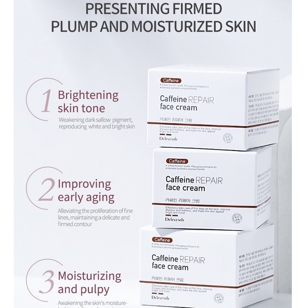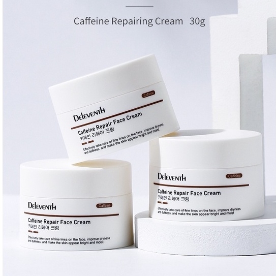 Deleventh là công ty chuyên sản xuất OEM cho các hãng mỹ phẩm HQ nên chất lượng sp rất cao cấp bao bì in toàn tiếng Hàn và sp ko hề thua kem chất lượng của các sp HQ Kem dưỡng ẩm CAFFEINE Cream là kem dưỡng ngày đem giúp giảm sự xuất hiện của nếp nhăn đồng thời Kem Dưỡng Mắt CAFFEINE Creamgiúp nuôi dưỡng làn da mỏng manh. Kem dưỡng CAFFEINE Cream là sản phẩm chăm sóc mắt dưỡng ẩm dành cho vùng da quanh mắt giúp giảm sự xuất hiện của bọng mắt quầng thâm và nếp nhăn. Trong đó Caffeine giúp làm giảm bọng mắt. Matrixyl 3000 là một peptide giúp làm giảm sự xuất hiện của nếp nhăn đồng thời dưỡng ẩm dịu nhẹ.